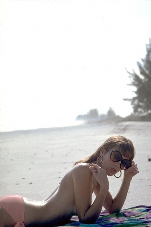 Ocean beach, Florida January 1976 RS7601BS Costume Topless and orange sidegather culotte bikini. Hat. Earrings. TMLB. Areolage and nippage. Erect nipples. Actions This photoshoot on a remote section of the Florida coast is for a travel magazine casts a local girl who's cool with the topless bit, even outdoors. Alexia is not one of those gals who is always putting her top on when she isn't posing; she likes the sun and the sand and the surf and she keeps her top off from the time she and the crew arrive at the beach until they all leave. At first Alexia lies on her stomach on a beach towel (1), but then performs what are apparently unwitting lift ups demonstrating cleavage, and single and double nipple peeks (2, 3, 4). She rests on her elbows, blocking the view of her boobs, but flashes a dirty look to the camera when it catches her areola (5, 6, 7, 8). In a longer shot, takes from the reverse direction, Alex looks at us yet appears unawares of another peeking (9). Ah, appearances--Alex can tease the boys she went to high school with but here she knows how to put all the right moves to work. The photographer, is, after all, a pro. She stands (10), her back facing us, and then sits in the surf with her arms folded over her breasts (11, 12). She pulls her knees up (13), exposing a breast (14), and splashes water onto herself (15, 16, 17). She loves this feeling, and rolls onto her stomach, and lets the surf cascade across her body (18, 19, 20, 21, 22, 23). Commentary Europe is not the only place in the world to flirt with topless beaches, as this American publication in 1976 demonstrates. It requires careful observation by the Bikini Scientist to discern that Alexia's culotte is not a sidetie, but rather a sidegather easily misinterpreted as a sidetie! Source Photo by permision Ray Solowinski. Shot in Florida an article by John Justin Smith, "Monokini Beaches," Holiday, April-May, 1976. 23 pictures. |