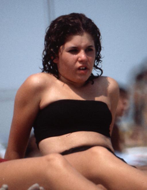 Jacob Riis Park, New York Summer 1985 RP8506 Costume Black wide bandeau/tube top and black montante. TML. Faint tan lines. Actions This subject sits on the beach (1). Commentary Widening of the bandeau top occurs during the 1980s. Faint tan lines suggest a migration from a previous triangle halter. Source Wildlife. 1 picture. |
