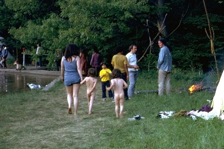 Wiz Bang Quick City, New York June 1972 WBQC7205 Costume Mother in undershirt top and shorts. Two children nude. Mother: L. Children: TMLBAP. Actions The threesome walks around the pond (1). Commentary Woodstock Nation lifestyles. Source Wildlife. 1 picture. |