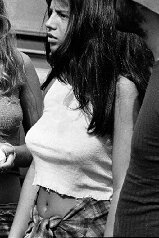 Watkins Glen, New York August 1973 WG7302 Costume White sleeveless braless croptop and shirt tied below waist. M. N-1. Bellage. Headlights. Actions This long-haired brunette stands by a van and hangs with her friends.(1). Commentary Rock concert bikinis. Source WIldlife. 1 picture. |